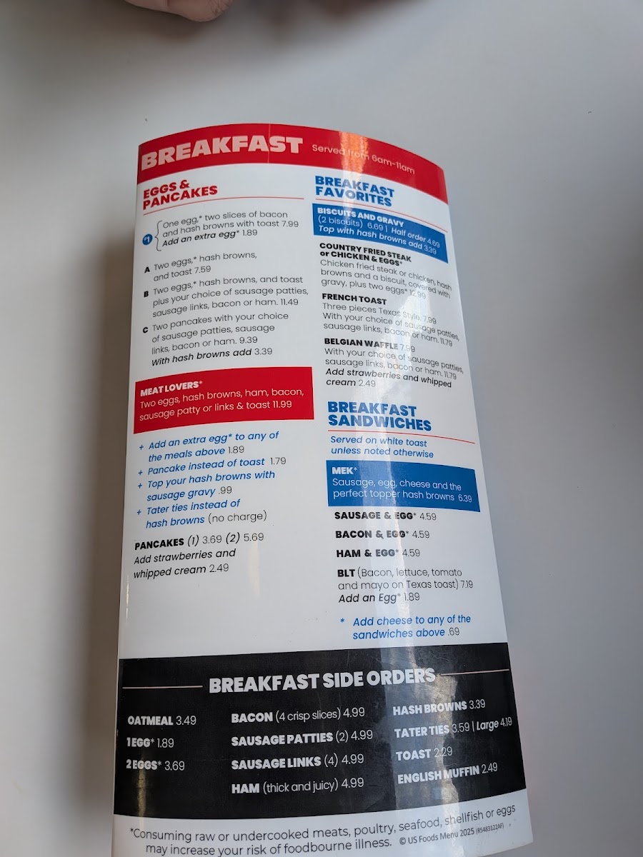 With your choice of sausage patties, sausage links, bacon or ham.