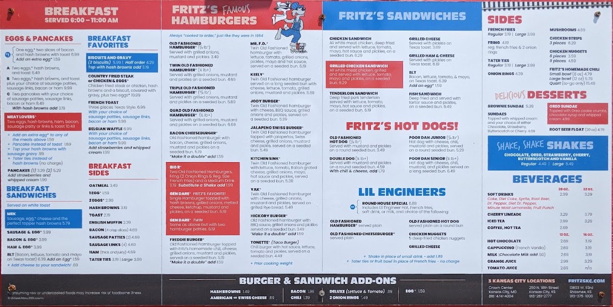 Includes Lil engineer hat, French fries, soft drink, apple juice or milk, and choice of the following.